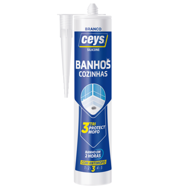 Para evitar infiltrações de água e humidade Silicone ácido de alta qualidade que evita infiltrações de água, ar e humidade. Anti-mofo Tri Protect nível 3, não enegrece: a tecnologia Tri Protect Mofo é um fungicida de alta eficácia, formulado para garantir uma tripla proteção à junta de silicone, atuando contra limos, fungos e bactérias, evitando assim o crescimento de mofo.